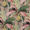 LA PALMA features both banana and fan palms, rhythmically swaying in the tropical breeze. Digitally printed to capture the delicate layers of this hand painted design, the wide width 100% linen base cloth enhances the depth of texture of this luxury tropical textile. Created in six divine colours, La Palmas palette ranges from romantic pastels, to fresh aquas and deep emeralds, made complete with a brooding sepia shade reminiscent of tropical flora during the golden hours of dawn and dusk. Surround yourself in a tropical paradise all year round with this dramatic painterly design.