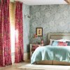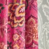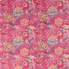 INDRA FLOWER - The softly diffused edges of this archive design give the look of a woven ikat, printed to create a gloriously colourful trail of stylised birds and flowers. The perfect way to liven up a room, add drapes in Hibiscus and upholstery in Emerald and Indigo/Cherry.