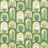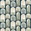 TERRARIUMS - A fabulous and unique design depicting exquisitely observed cactus plants and orchid flowers encapsulated in a glass-domed terrarium. Mica highlights capture the sheen from the top of the dome.