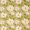 Grandiflora - A modern cotton-linen fabric of magnificent magnolia blooms, conventionally printed to achieve striking depth of ground, with the texture and tones of the flowers vividly reproduced in beguiling colourways. Subtle nuances of light and shade give the flowers a luminous waxy quality. A perfect choice for curtains and upholstery, a wallpaper of the same name is also available.ms, with the texture and tones of the flowers vividly reproduced. Subtle nuances of light and shade give the flowers a luminous waxy quality. The design is printed in four colourways on linen union.