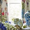 PAINTERS GARDEN - Full bloom tulips and anenomes in ornate vases and floating petals in bowls are displayed on this 100% cotton fabric design, produced in lifelike colourways on neutral backgrounds. The design was influenced by the work of Royal Academician Elizabeth Blackadder, and is suitable for blinds and curtains.